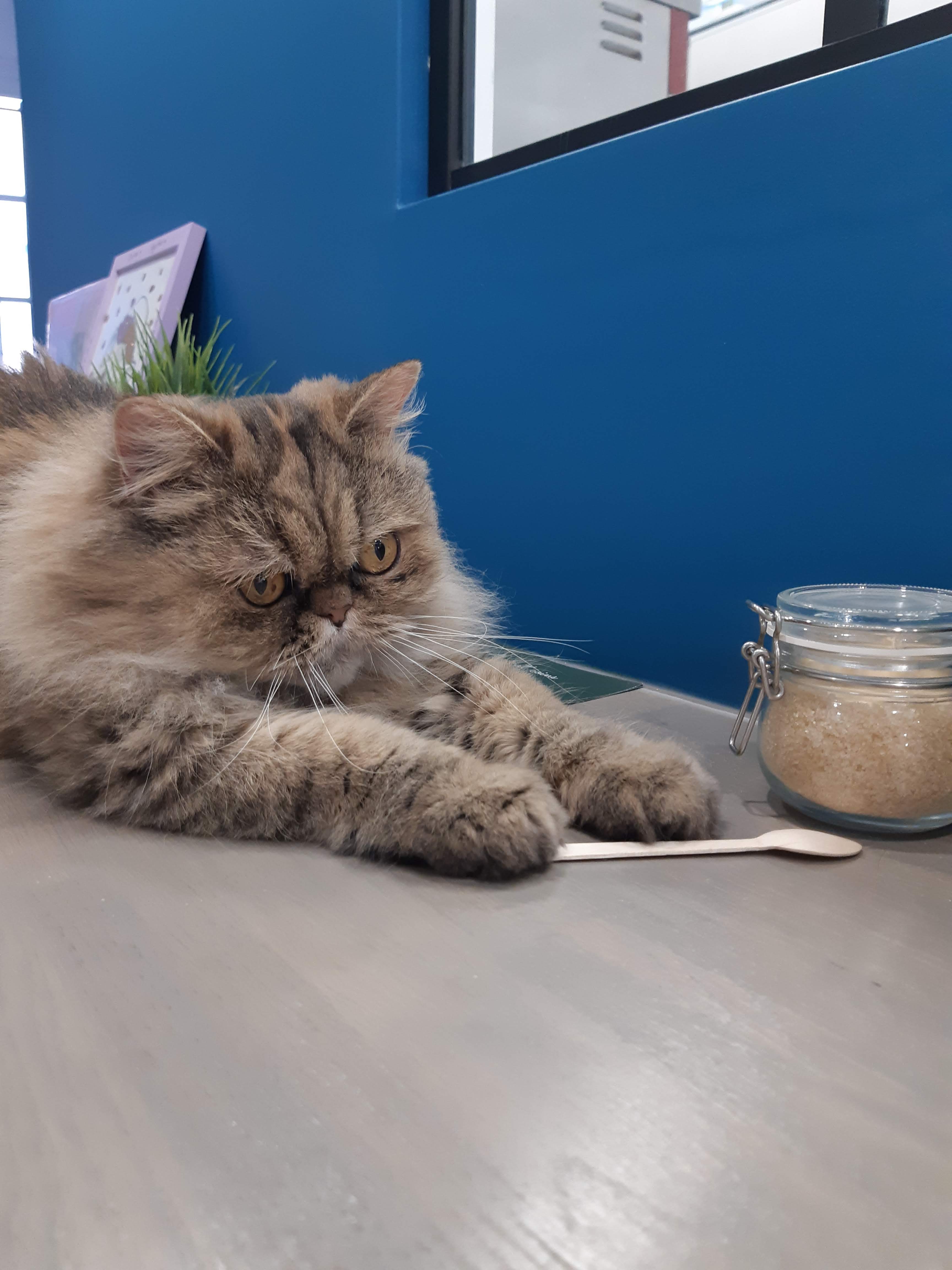 Posté le 13/07/2022 à 14:40"Passé le sas d'entré du bar à chats Aux Cat' Coins du Monde , vous êtes accueilli par le grand sourire de Blandine , la gérante du lieu .Ici, les chats sont rois , et déambulent tranquillement et se laissent admirer ,(ou vous ignorent complétement) , pendant que vous dégustez thé , café ou délicieuses pâtisseries maison . C'est un salon de thé fort agréable que je recommande aux amoureux des chats ... et aux autres ."